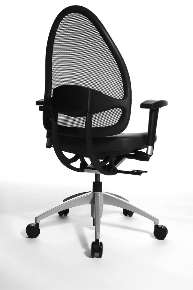Stufenlose Sitzhöhenverstellung mit Toplift Rückenlehne mit integriertem Body-Balance-Tec-Gelenk und höhenverstellbarer Lordosenstütze.
