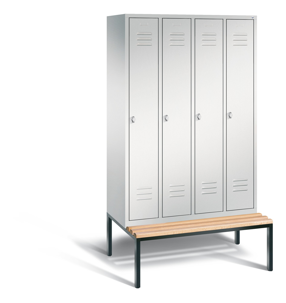 C+P Garderobenschrank, die Klassischen, mit unterbauter Sitzbank, Abteilbreite 300 mm, 4 Abteile