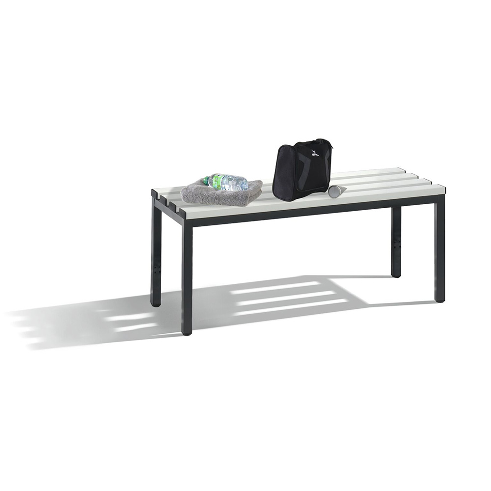 Sitzbank mit Kunststoffleisten und Schuhrost