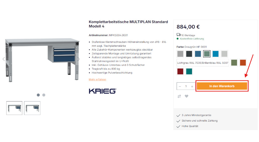 - Klicken Sie auf die Schaltfläche "In den Warenkorb", um das Produkt Ihrem Warenkorb hinzuzufügen. Sie können den Warenkorb jederzeit einsehen und Änderungen vornehmen.