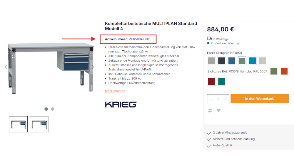 Die jeweilige Artikelnummer befindet sich auf der Produkt-Seite unterhalb des Produktnamens.