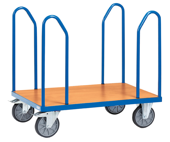 Der Plattformwagen ist ausgestattet mit mit 2 Lenk- und 2 Bockrollen und lässt sich problemlos mit Lasten bis zu 150 kg bewegen. Durch den praktischen Schiebebügel wird der Benutzer vor körperlichen Anstrengungen geschont. Der Plattformwagen mit einer Ladehöhe von 120 mm ist für den täglichen Einsatz geeignet. Die Wagenbügel können einfach auf eine Höhe von 230 mm geklappt werden, um das Be- und Entladen zu erleichtern. Wenn der Wagen beladen ist, können die Bügel auf eine Höhe von 865 mm aufgestellt werden, um sicherzustellen, dass die Ladung sicher verstaut ist. Ladefläche und Klappbügel sind in grau hochwertig pulverbeschichtet. Die Ladefläche beträgt 740x470 mm.Der Plattformwagen ist die perfekte Lösung für alle Arten von Transportaufgaben in Werkstätten, Lagern oder Büros. Dank seiner robusten Konstruktion und seiner einfachen Handhabung kann er mühelos Lasten bewegen und dabei die Arbeitsprozesse optimieren.