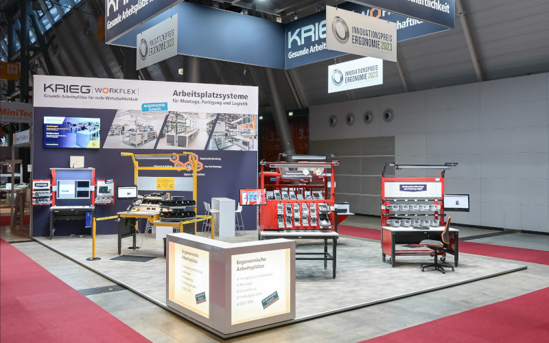 - Die Materialzufuhr erfolgt beim MULTIFLOW ausschließlich von hinten. Die einzelnen benötigten Bauteile werden in den Best-Point-Greifräumen oberhalb des Tisches in den jeweiligen KLTs bereitgestellt und können je nach Anforderung verarbeitet werden.