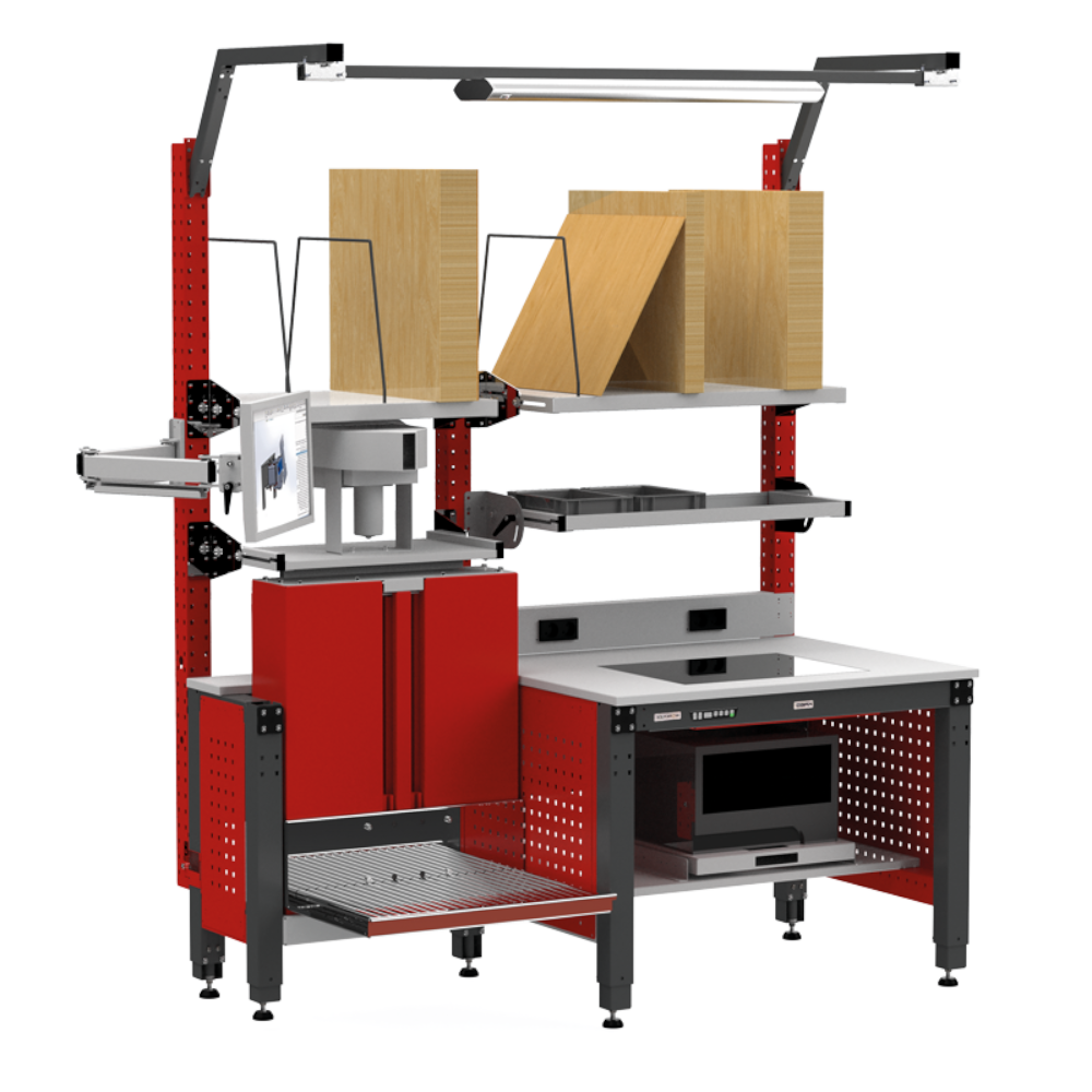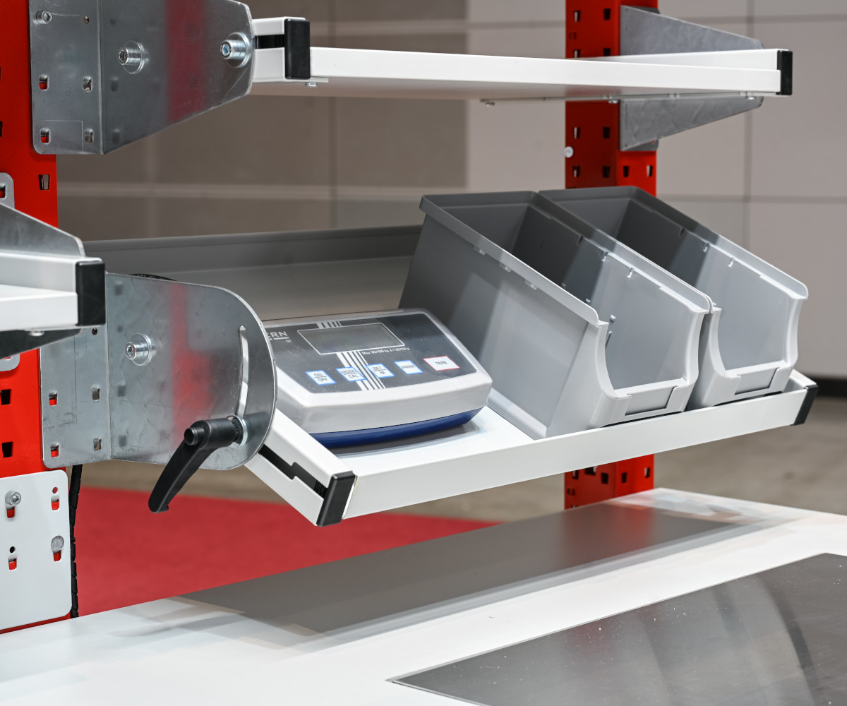 - Höhenverstellbarer Anbautisch zur Bereitstellung von Drucker oder Waage