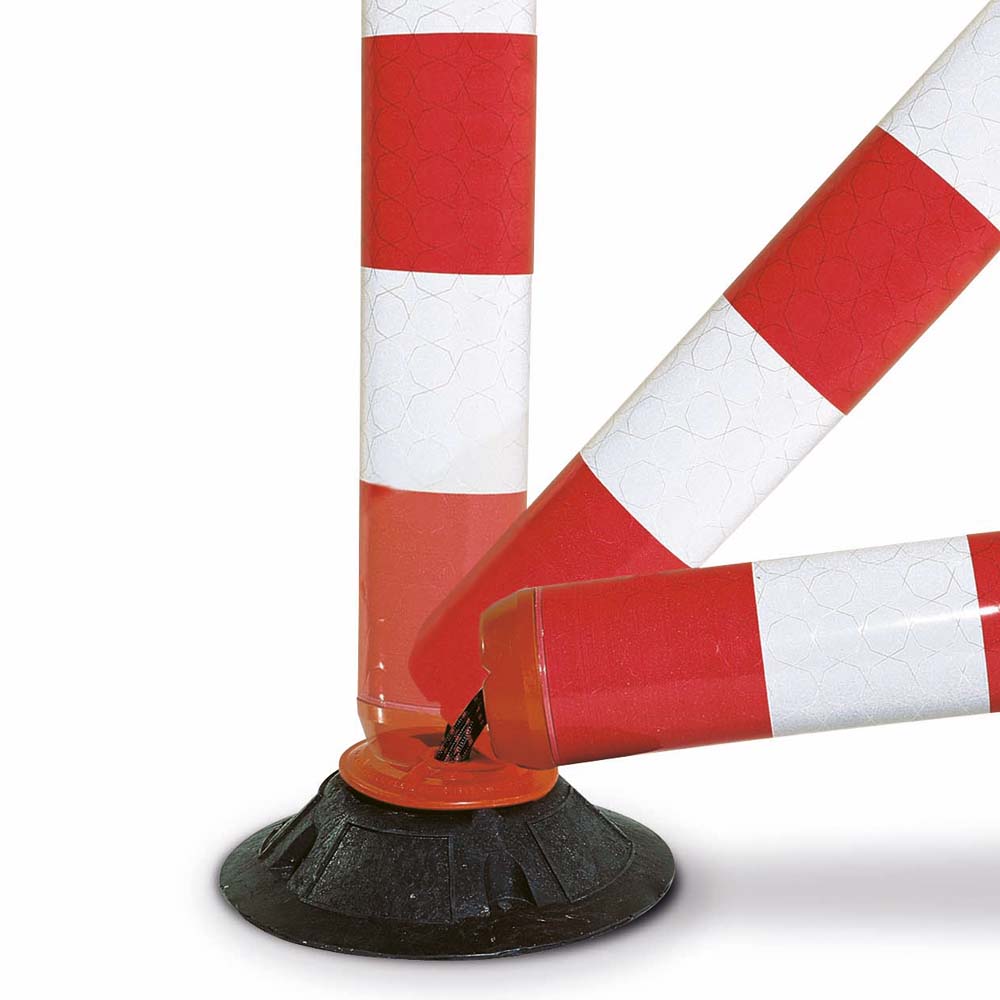 Sie warnen vor Gefahren und Hindernissen, trennen Fahrbahnen voneinander. Unübersehbar bei Tag und Nacht. Ein Bajonettverschluss verbindet den Zylinder mit dem robusten Gummi-Fuß. Dieser wird aufgedübelt oder mit handelsüblichen Klebstoff auf die Fahrbahn geklebt.