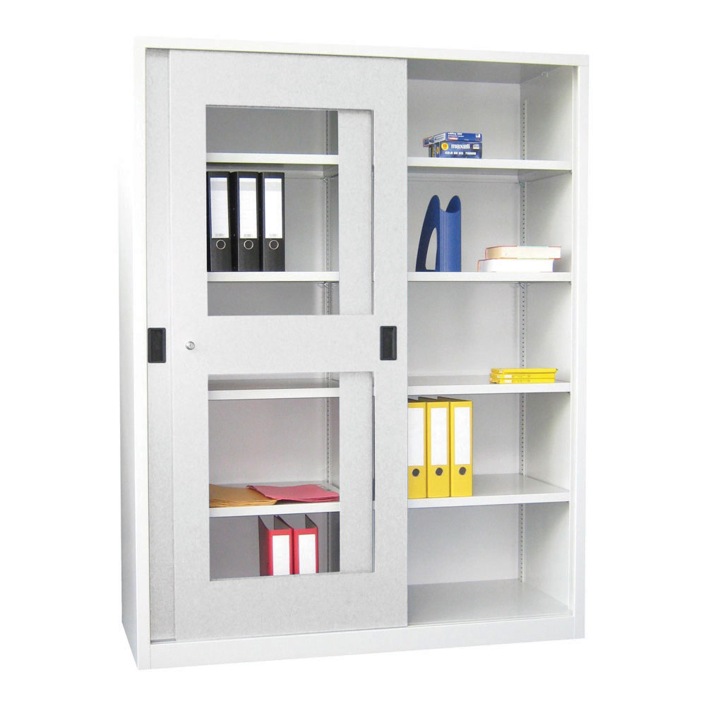 Schiebetürschrank mit Sichtfenster, HxB 1950 x 1500 mm, verzinkte Böden