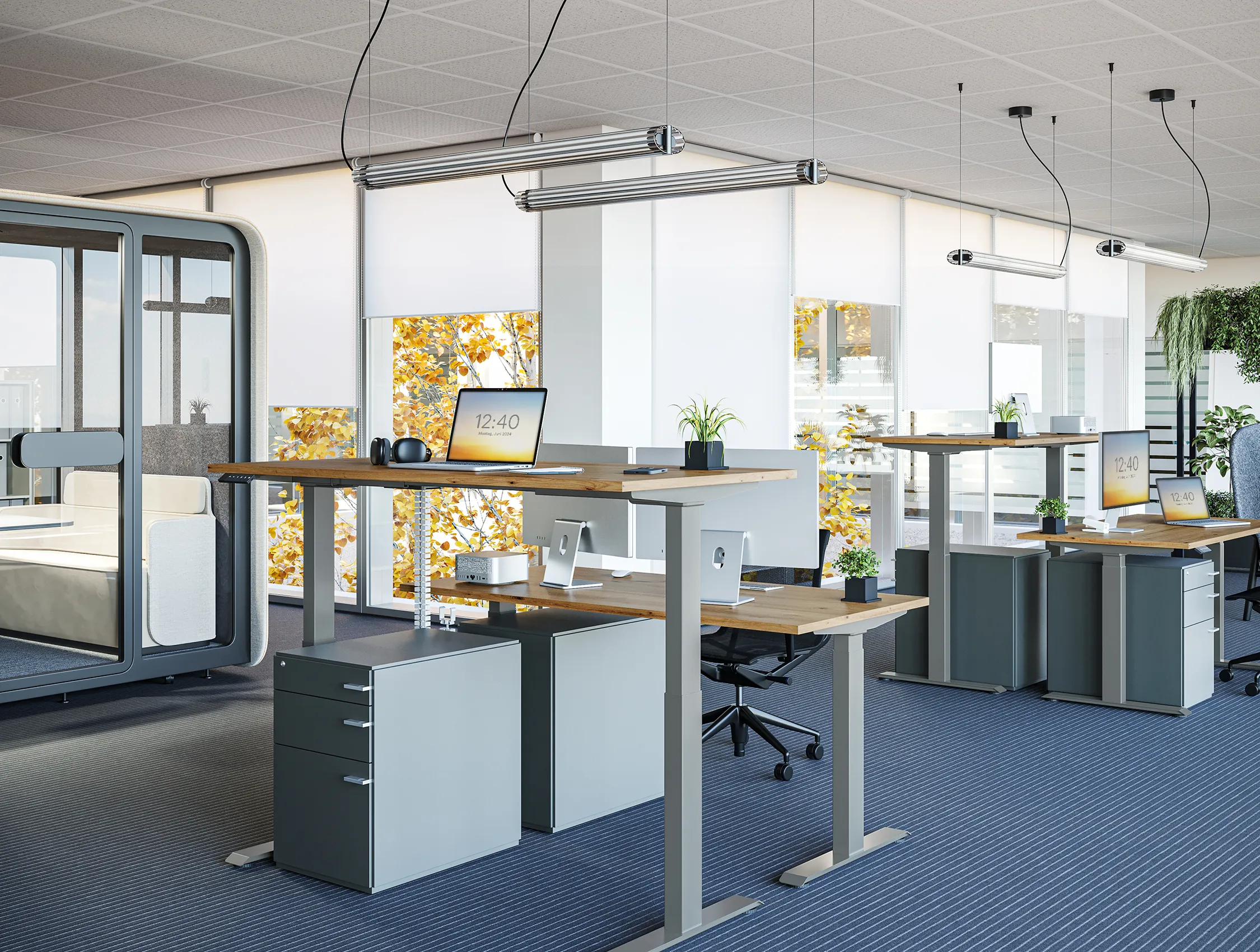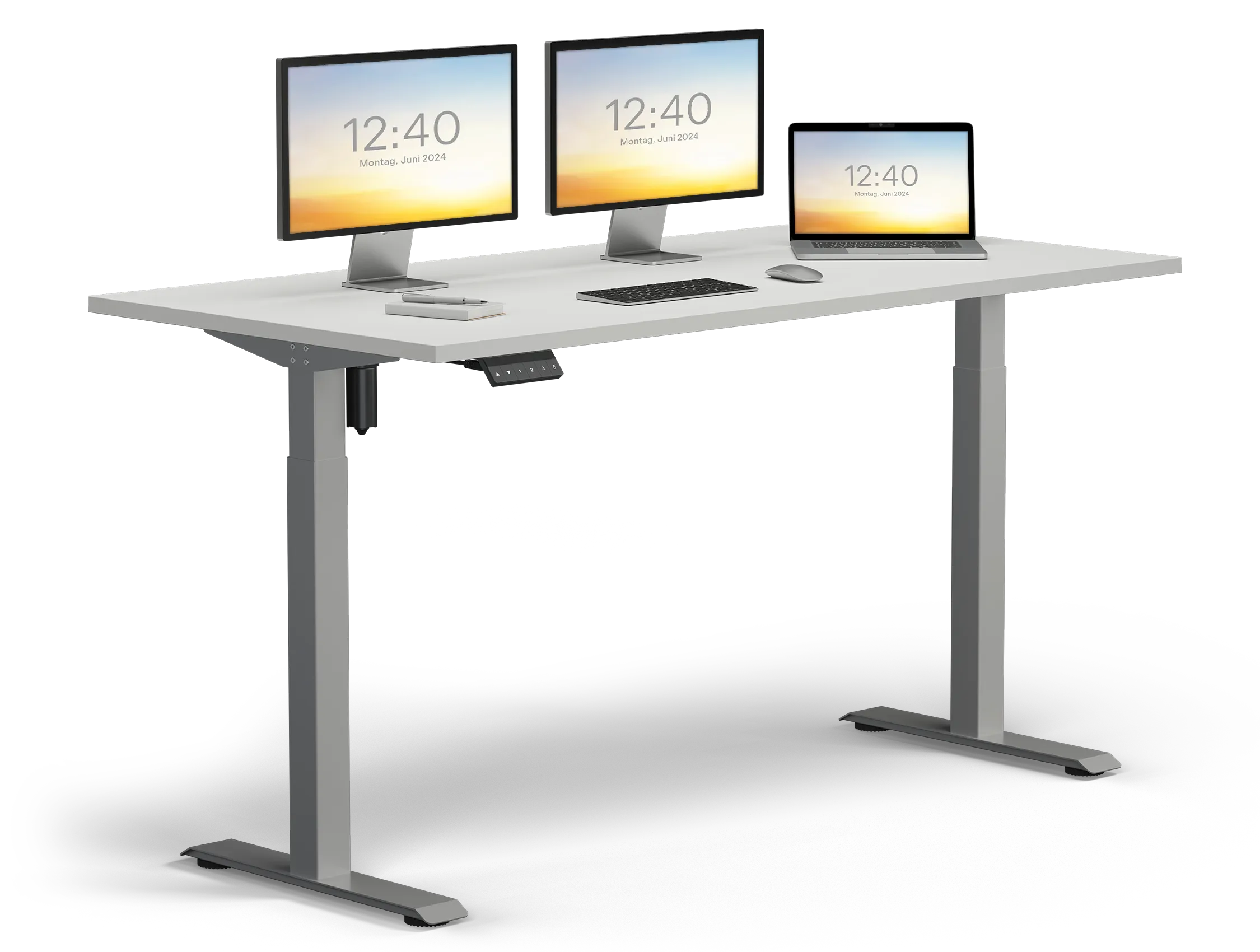 Ein elektrisch höhenverstellbarer Schreibtisch berücksichtigt verschiedene Faktoren wie Ihre Körpergröße, die Art Ihrer Arbeit und die Höhe Ihres Bürostuhls. Im Gegensatz zu statischen Schreibtischen lässt er sich individuell anpassen und fördert so eine gesunde und ergonomische Arbeitsumgebung. Wenn Sie nur in einer Position arbeiten, besonders im Sitzen, können Rückenschmerzen und andere gesundheitliche Probleme auftreten. Mit einem höhenverstellbaren Schreibtisch können Sie bequem zwischen Sitz- und Stehposition wechseln, was Ihren Kreislauf anregt, Rückenschmerzen vorbeugt und Ihre allgemeine Leistungsfähigkeit steigert.