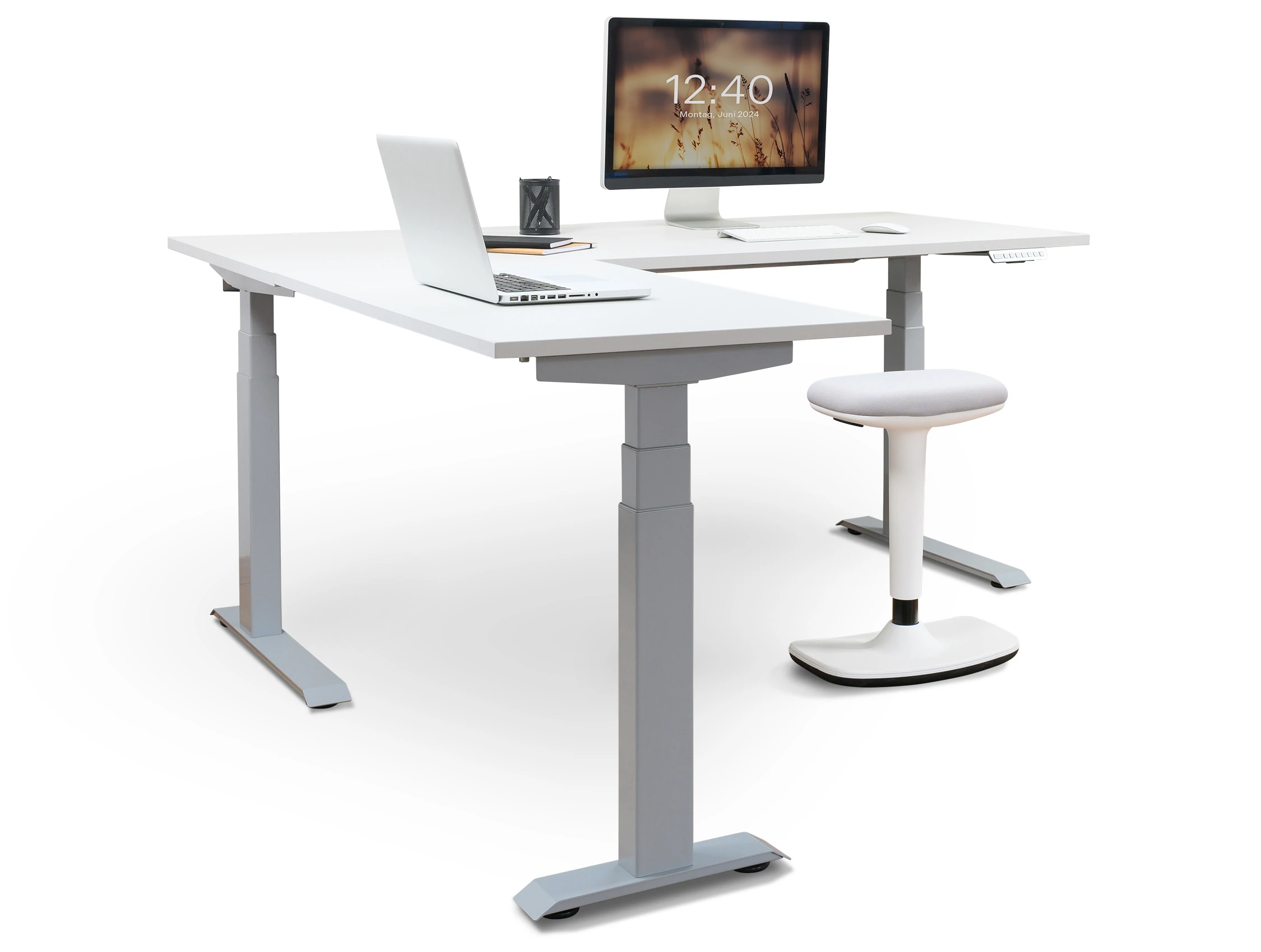 Wenn Sie den richtigen elektrisch höhenverstellbaren Schreibtisch für sich finden möchten, sollten Sie einige wichtige Faktoren berücksichtigen. Der TOPFIT Smart ist ein hervorragendes Einsteigermodell, das preisgünstig und funktional ist. Für den Home-Office-Bereich bietet sich der TOPFIT Smart Home an, der durch sein abgerundetes Gestell besonders elegant wirkt. Der TOPFIT Smart Plus überzeugt durch seine breiteren und stabileren Beine, die für mehr Stabilität und Tragkraft sorgen, und ist zudem leiser beim Hochfahren – perfekt für anspruchsvolle Arbeitsumgebungen, in denen es auf Leistung und Zuverlässigkeit ankommt. Wenn Sie noch mehr Leistung und eine schnelle Montage in nur 6 Minuten benötigen, ist der TOPFIT Basic ideal. Für höchste Ansprüche und ebenfalls eine schnelle Montage empfiehlt sich der TOPFIT Premium, der sich durch seine professionelle Qualität auszeichnet. Achten Sie darauf, dass der Schreibtisch die richtige Höhenverstellung bietet, stabil ist und ausreichend Platz für Ihre Arbeitsutensilien bietet, um eine optimale Ergonomie und Funktionalität zu gewährleisten. Der TOPFIT Eckschreibtisch ist die perfekte Wahl, wenn Sie Ihren Raum effizient und platzsparend nutzen möchten, ohne auf Flexibilität und Funktionalität zu verzichten.