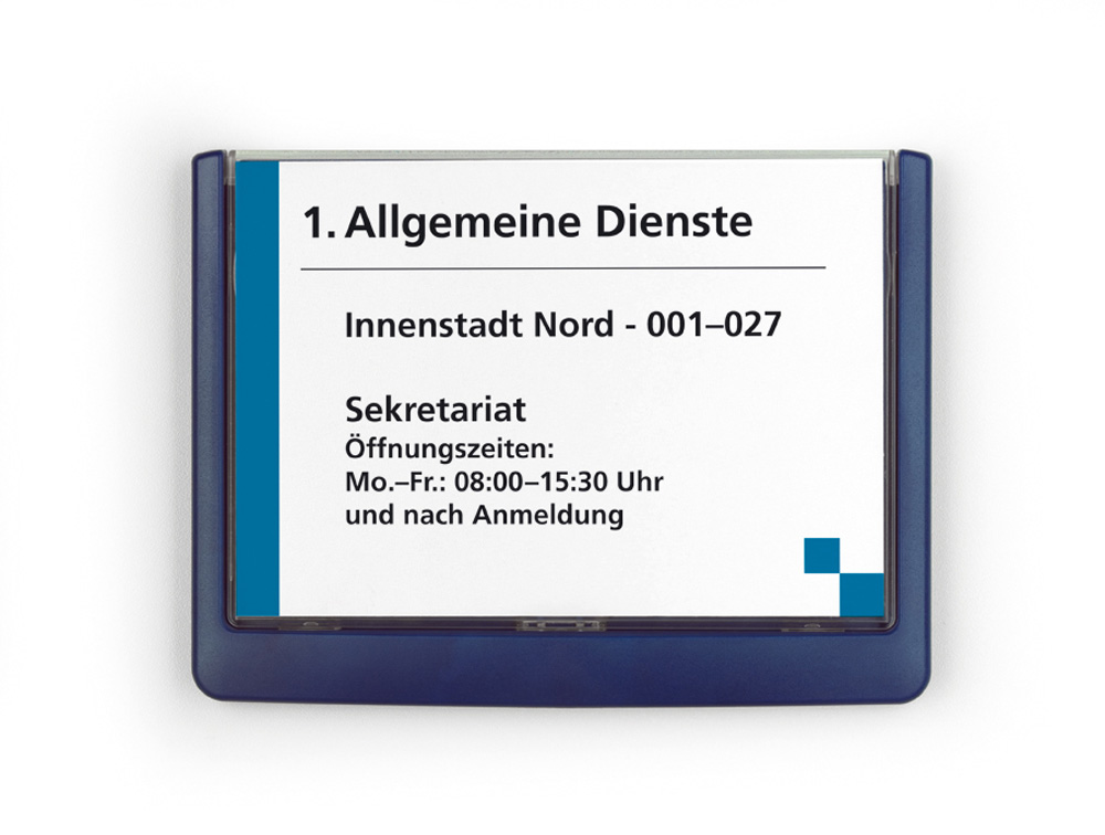 Formschöne Rundungen. Leichtes Austauschen der Kartoneinlagen durch vollständiges Herausziehen des Sichtfensters.