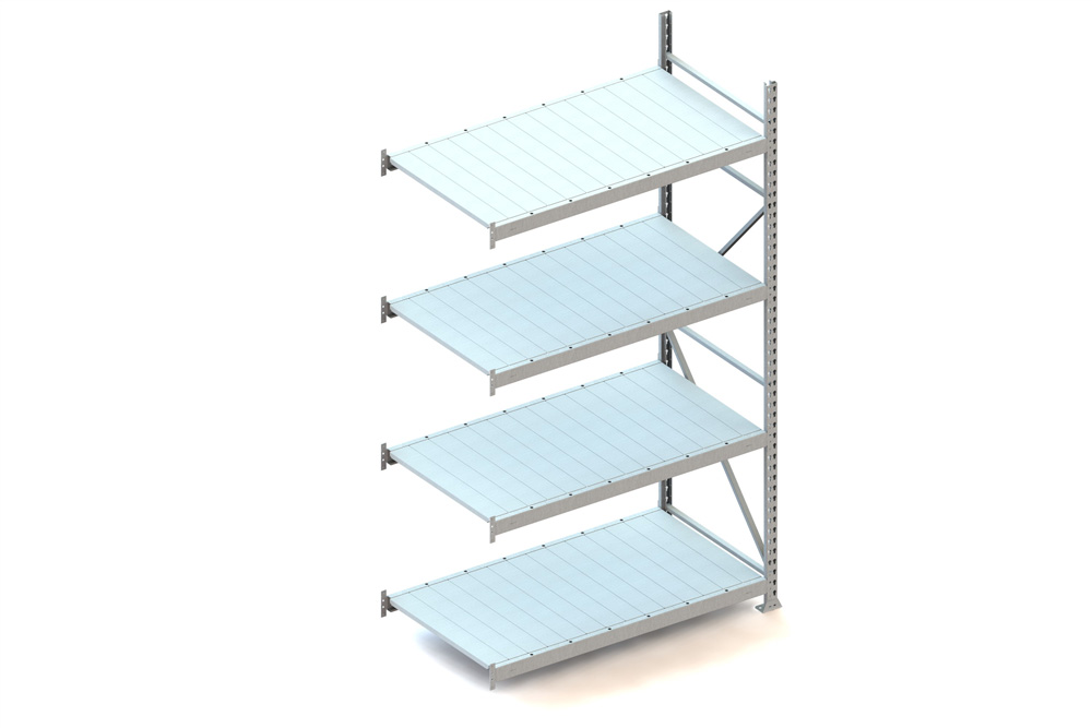 Weitspann-Anbauregal mit Stahlblechpaneelen, Höhe 2500 mm, 4 Ebenen